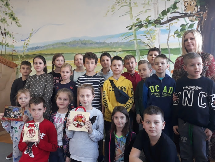 Tym razem klasa przygotowała piękną kartkę w ozdobnym opakowaniu oraz zdjęcie klasy z podpisami dzieci.